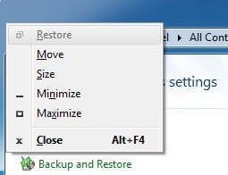 Step 2: Now go ahead and press ALT+SPACEBAR and you’ll see a small menu appear in the window.