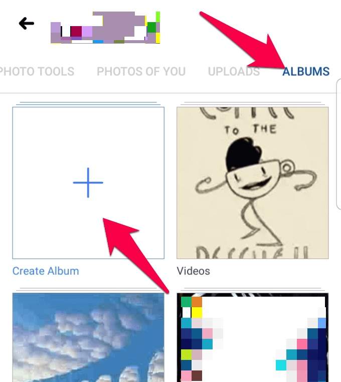 - Tap Album and then tap Create Album. Name the album and give it a description.