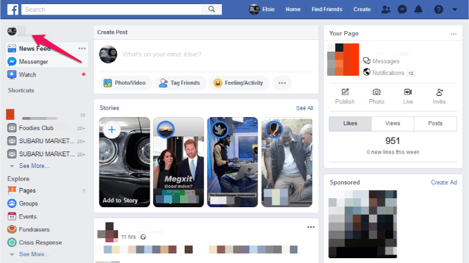 In Facebook, before you can move photos to a different album, you’ll need to create the albums. * To do this, go to your News Feed and click on your name in the upper left side of the screen, to open your profile.