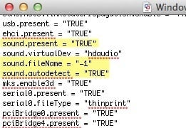 If these parameters are not in the file, you need to add them. Also, you need to remove the following parameters if they exist: sound.virtualdev = “sb16"sound.virtualdev = “es1371"sound.virtualdev = “hdaudio”