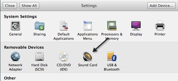 Click on Sound Card in the list of items under Removable Devices: