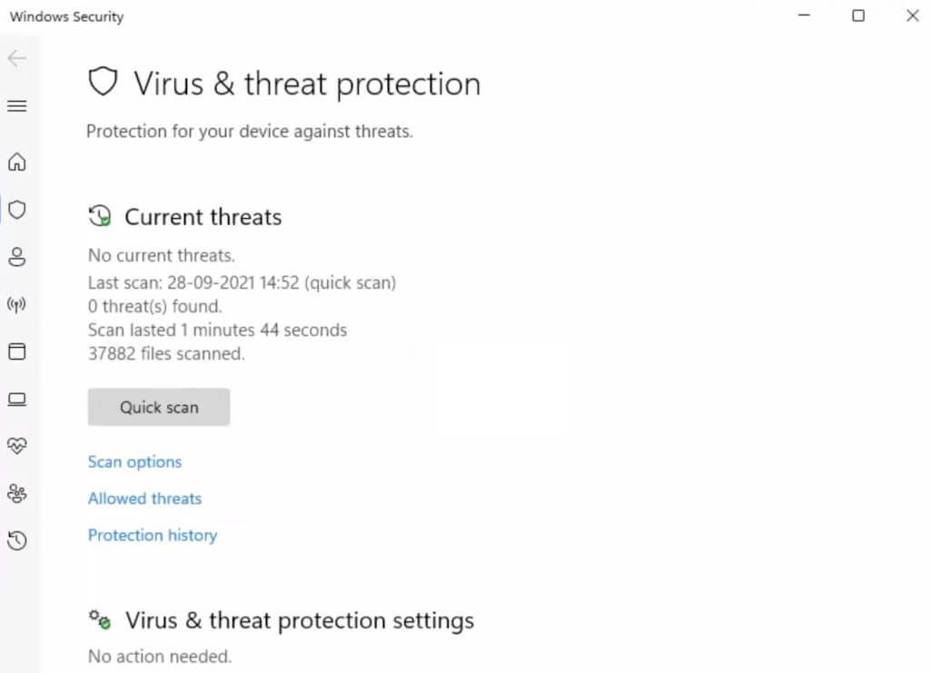 Microsoft Defender, as built into the Windows operating system, is seamlessly integrated into Windows Settings. It’s easily accessible and navigable within the update and security section of the Windows settings dashboard.