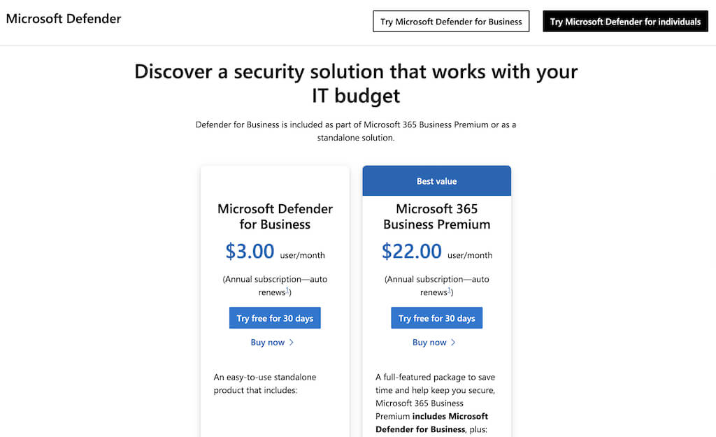 Microsoft offers another package to enterprise customers called Microsoft Defender for Endpoint or Microsoft Defender for Business. This security suite helps to secure Windows, macOS, Linux, Android, and iOS devices against sophisticated threats. This protection package is mostly for big businesses and large-scale networks.