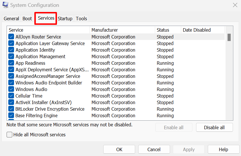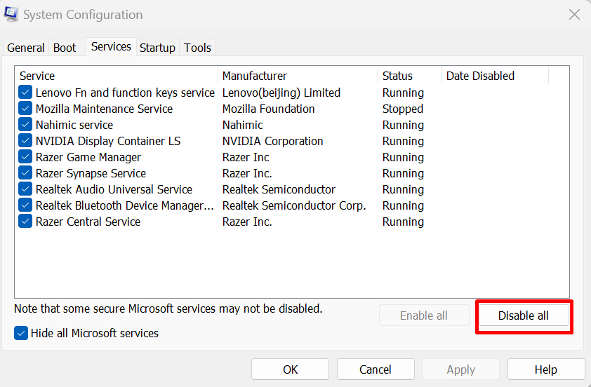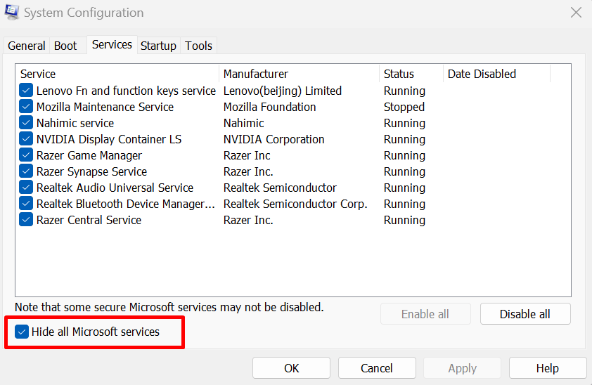A third-party app running in the background could be interfering with Notepad and causing it to freeze or crash. Perform a clean boot on your Windows 11 device to check if this is causing the problem. Follow these steps: