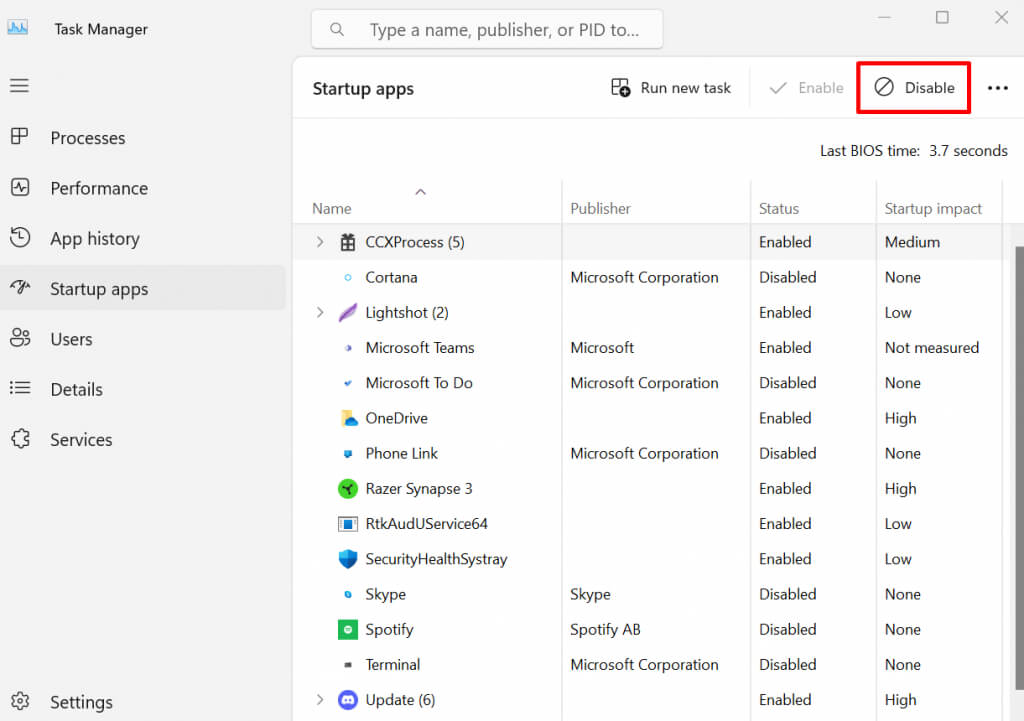 - Save these settings and exit the System Configuration. * Open the Task Manager by pressing Ctrl + Alt + Delete on your keyboard. * Go to the Startupapps.