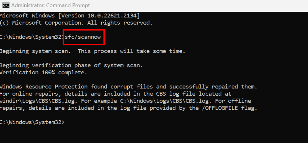 - After the scan is complete, close the command prompt and try out Notepad to see if it keeps crashing.