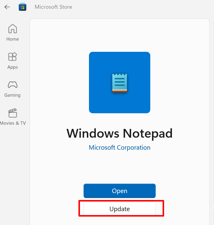 - In the Microsoft Store, type Notepad in the search bar at the top of the screen. * If there’s an available update, you’ll be able to see the Update button. Click it, and the update will start automatically.