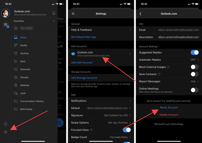 If you continue to have sync issues in Outlook’s Android or iOS apps, it’s a good idea to reset the email account in question.