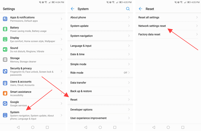 Reset Network Settings on Android