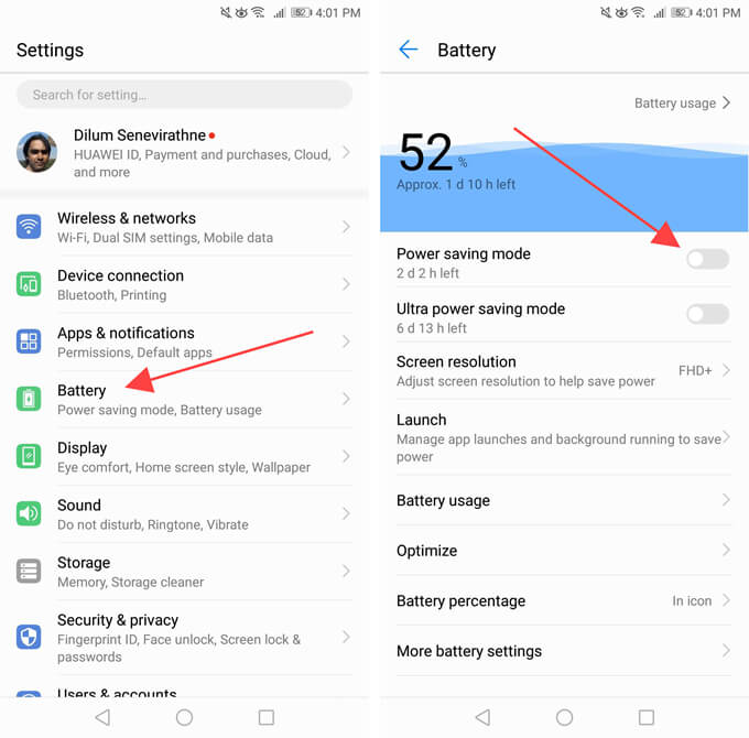 Disable Power Saving Mode on Android