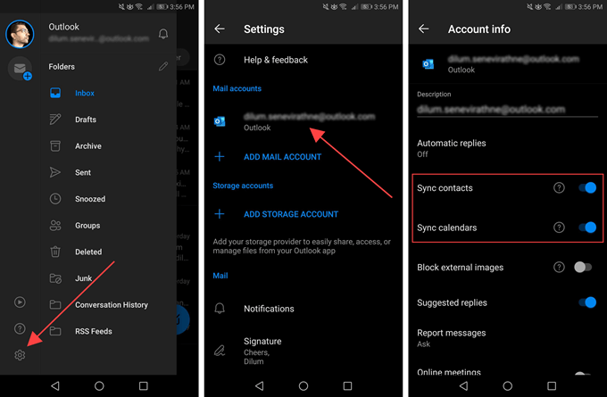 Outlook allows you to sync your contacts and calendars with the native Contacts and Calendar apps on your Android device. On iOS, you can save your contacts locally to the Contacts app. If that does not happen, check Outlook’s sync settings.