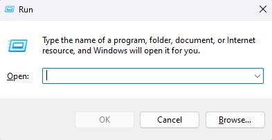 - Press Win + R to open the Run dialog box.