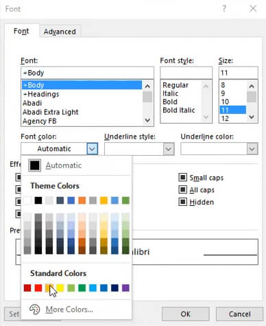 - The exact font color you select doesn’t matter – just make sure it isn’t white and select OK.