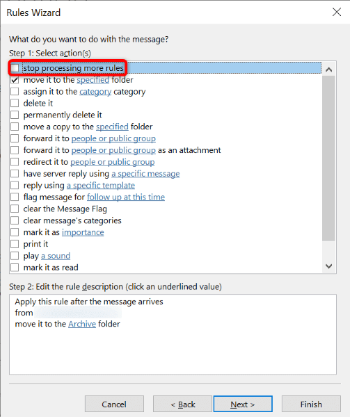 4. Turn Off Outlook’s “Stop Processing More Rules” Option