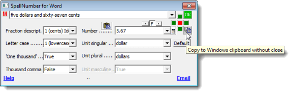 You can also copy the spelled-out number to the clipboard without closing the dialog box. To do this, click the Copy to Windows clipboard without close button. It looks like a typical Copy button.
