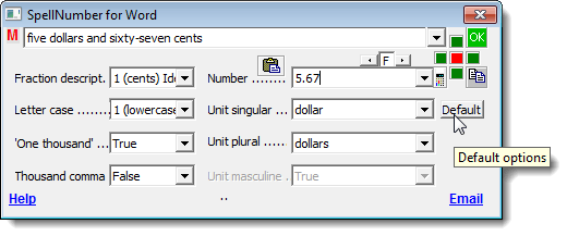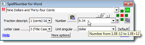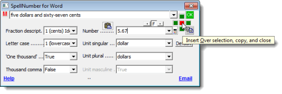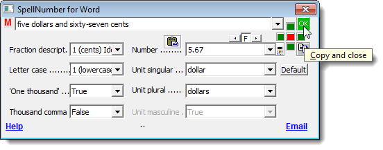 To copy the spelled-out number to the clipboard and close the SpellNumber for Word dialog box, click the green OK button.