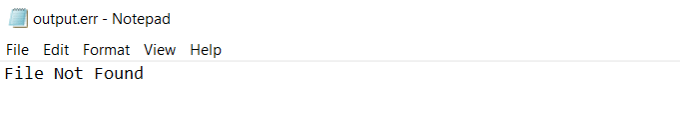 This will result in the same output file as the first example above where you only redirected the Standard Output, but with this command the error won’t echo inside the console. It won’t create an error log file either.