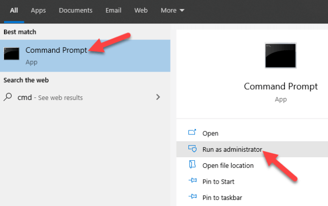 - Click Command Prompt and select Run as administrator from the right pane.