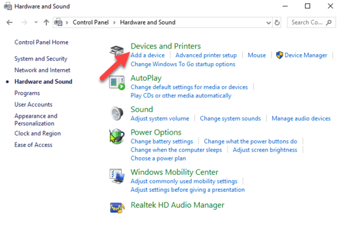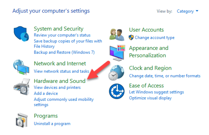 - Open Control Panel>Hardware and Sound.