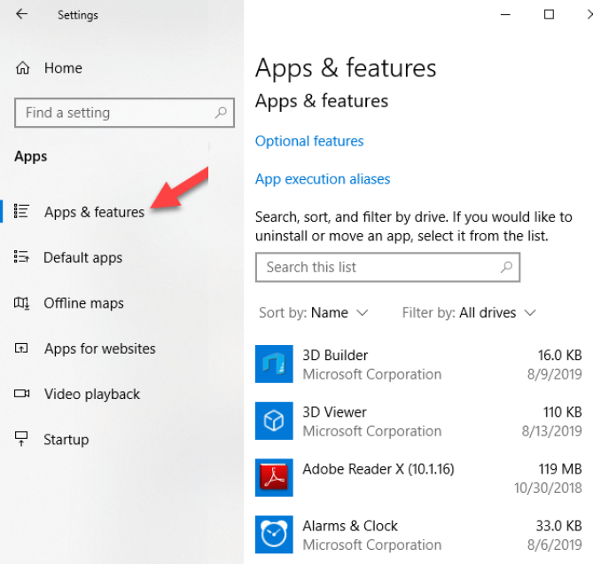- Next, go to Settings>Apps>Apps & Features and select the software you want to remove.