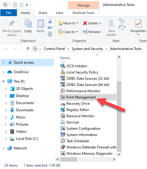 - Double-click the Print Management shortcut.