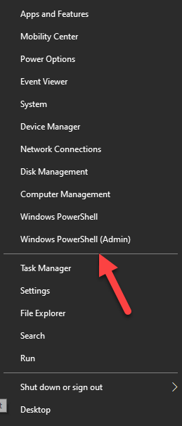 - Right-click Start > Windows PowerShell (Admin).