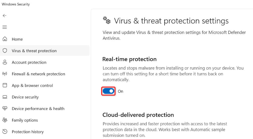 - Turn off Real-time protection.