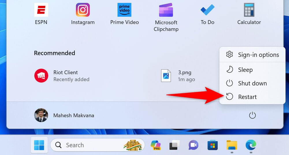 If the issue persists, your Windows PC might be experiencing minor glitches. In this case, give your PC a reboot to possibly fix those problems.
