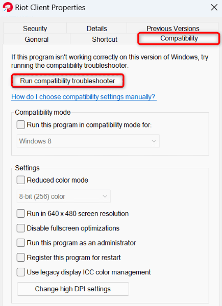 One reason Riot Client fails to launch is that the app has compatibility issues with your Windows version. In this case, use Program Compatibility Troubleshooter to find and fix the app’s compatibility problems.