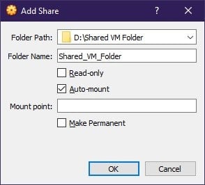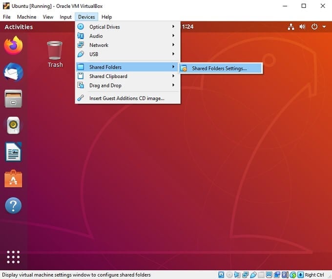 You can add the shared folder to your virtual machine with it running or stopped. We’re going to mount the shared folder with our Ubuntu machine running.