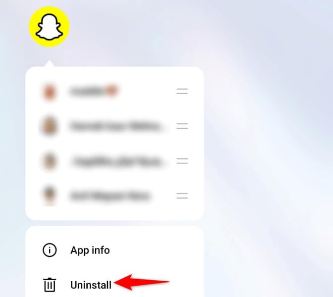- Tap and hold Snapchat in your phone’s app drawer. * Select Uninstall in the menu.