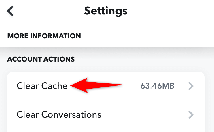 The iPhone doesn’t allow you to clear an app’s cache from the device’s settings menu. However, you can use Snapchat’s in-app option to delete the saved cache files.