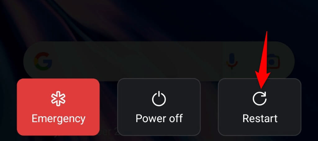 If you couldn’t resolve the issue by reconnecting your phone to the internet, give your phone a reboot and see if that fixes the problem. Rebooting your phone disables and re-enables all your device features, fixing many minor issues.