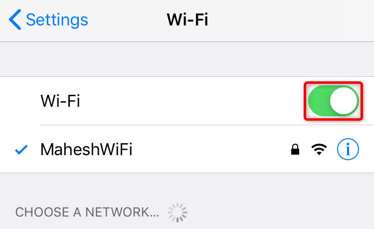 - Toggle off Wi-Fi, wait for 10 seconds, and toggle the option back on.