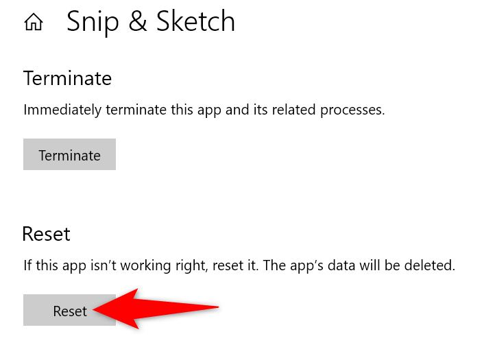 If your Snipping Tool still doesn’t work, your configuration in the app might be faulty. In this case, reset your app’s configuration to resolve your issue potentially.
