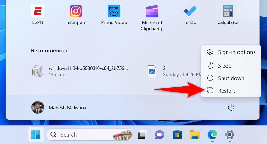 Your Windows operating system may be experiencing a minor glitch, causing the Snipping Tool not to launch or work as expected. This happens for various reasons, and one way to fix these minor system problems is to restart your PC.