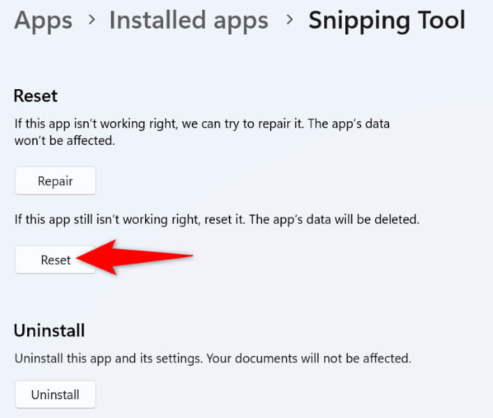 7. Reset Your Snipping Tool App