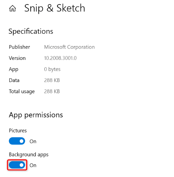 - Open Settings using Windows + I. * Select Apps in Settings. * Select Snip & Sketch on the app list and choose Advanced options. * Turn on the Background apps toggle on the next screen.