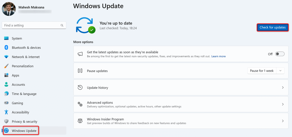 If you’ve paused Windows updates and haven’t updated your Windows version in a long time, your outdated software version may be why the Snipping Tool isn’t working. Old software versions often have many problems.