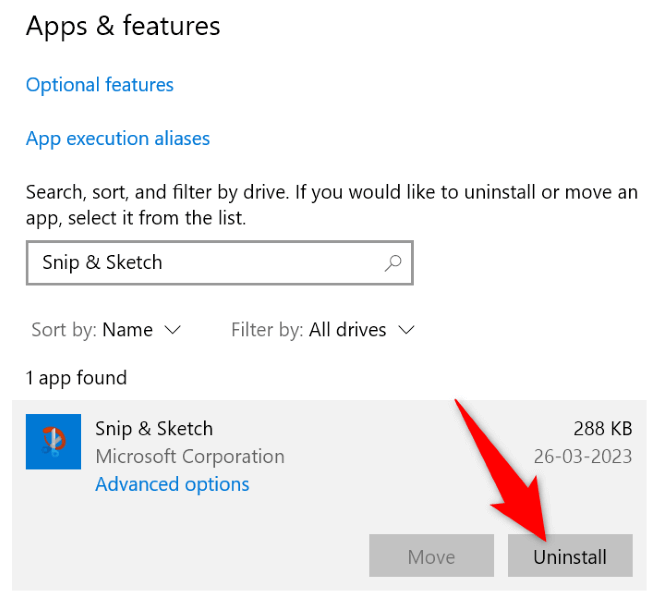- Select Snip & Sketch and choose Uninstall.