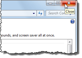 To close the Control Panel, click the X button in the upper, right corner of the window.