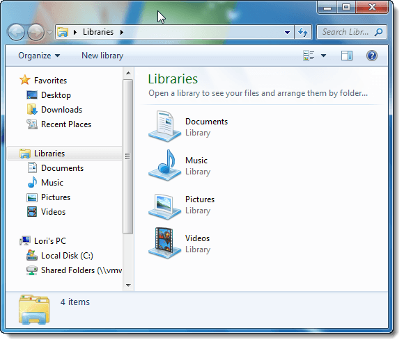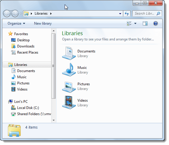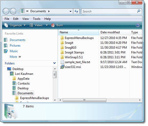 The following Windows Explorer window shows the Aero Glass transparency effect in Windows 7. You’ll notice that you can see the Windows logo on the desktop through the window’s border.