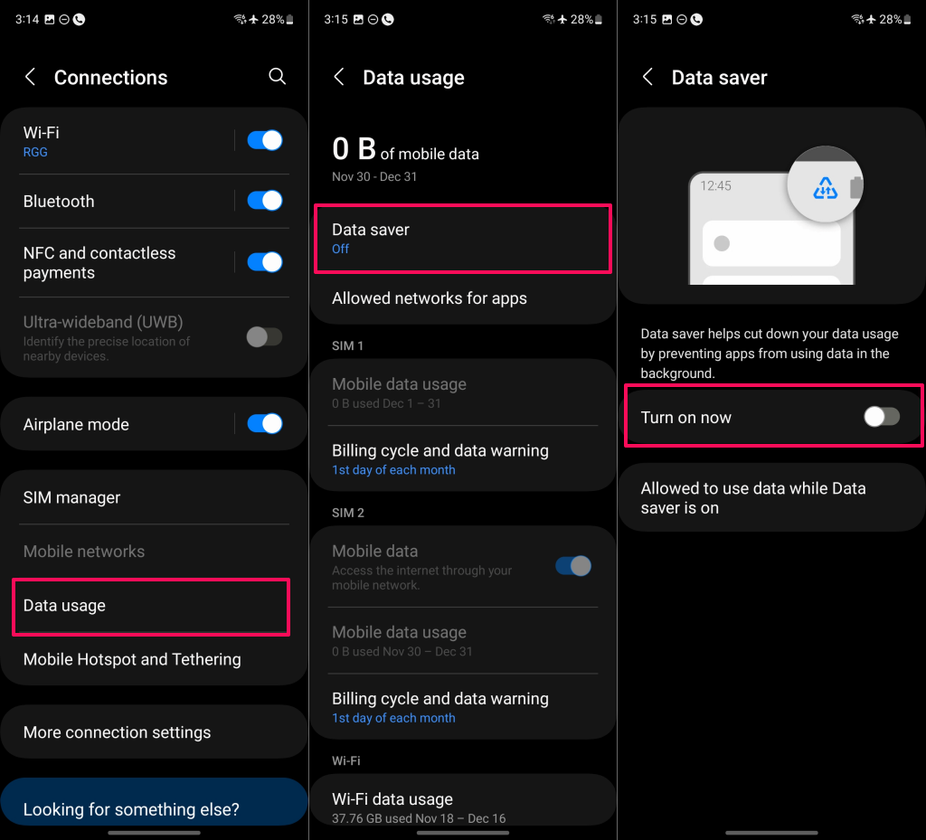 If you use a Samsung device, go to Settings > Connections > Data usage > Data saver and toggle off Turn on now.