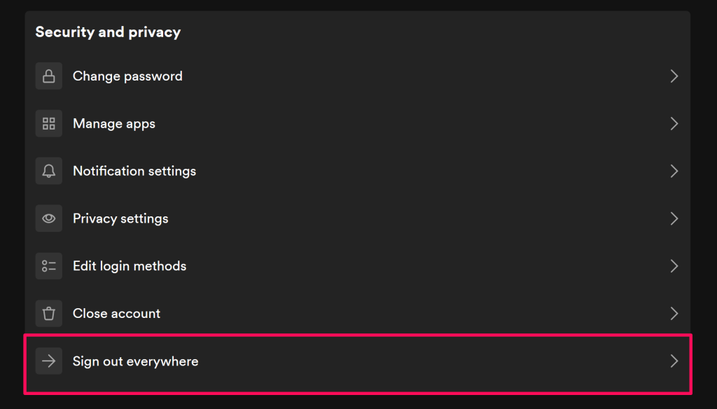 Note: The “Sign out everywhere” option won’t sign out Spotify on partner devices like PlayStation consoles or Sonos speakers.