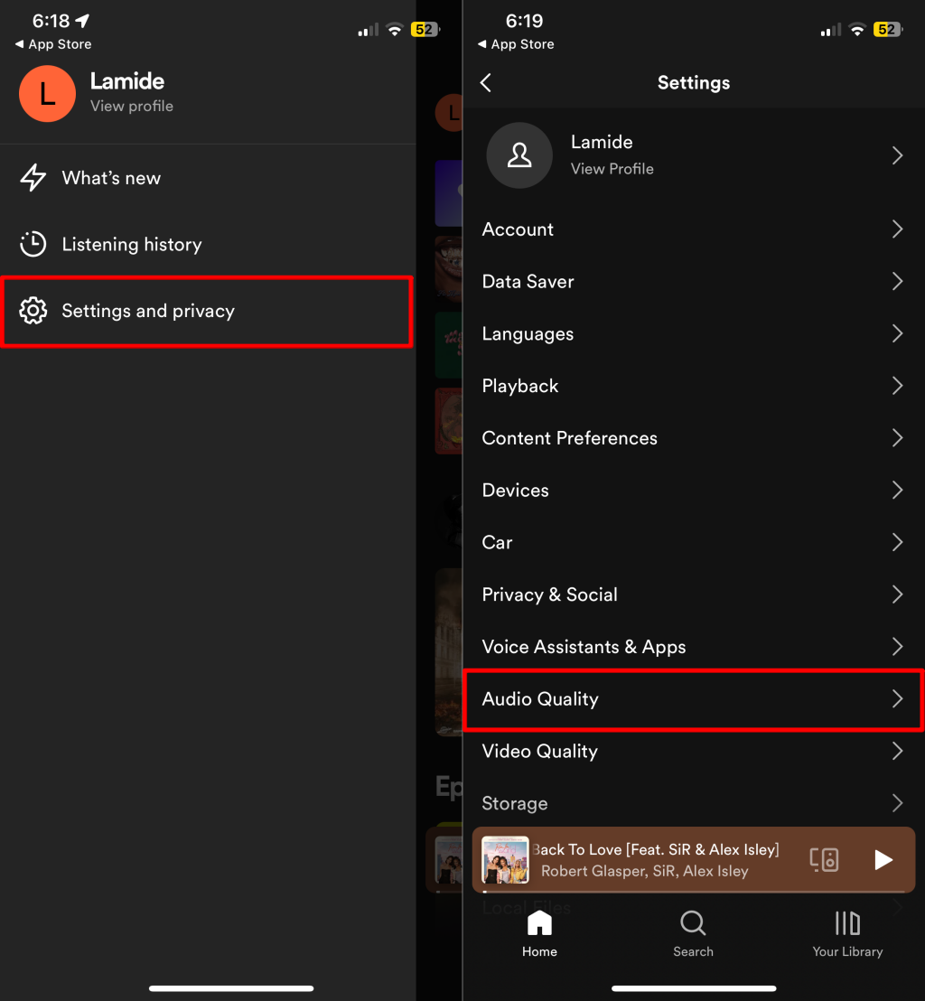 Switch to a Wi-Fi connection if you’re streaming music at the highest quality on cellular data and aren’t achieving the desired results. You could also lower the audio stream quality to match your connection speed/quality.