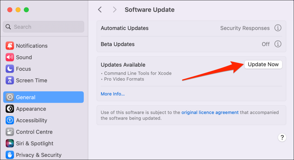 Head to System Settings > General > Software Update and select Update Now to update your Mac’s operating system.