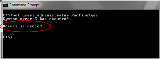 However, if you type this into the Command Prompt using an administrator account, you get the message: Access is denied.