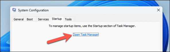 - Next, press the Startup tap and press Open Task Manager.