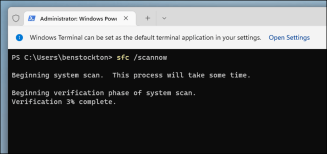 It’s crucial to run the DISM scan before the SFC scan. This is because DISM can fetch fresh copies of damaged files from Windows Update, which SFC can use to complete its repairs.