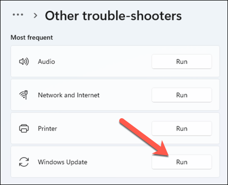 - Next, press Other troubleshooters, then press the Run button next to Windows Update.